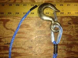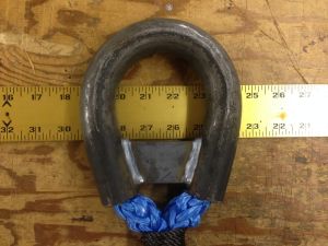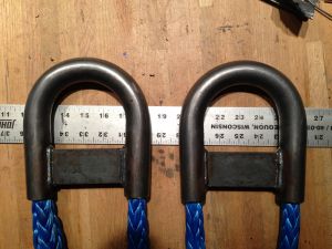 3/4" Amsteel blue doubled, 128,000 lbs average break strength is recommended for dirt scoops and heavy equipment.