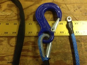Large tractors, combines and agricultural equipment - 3/4" Amsteel blue rated at 64,400 lbs average strength is recommended. Price includes heavy duty 3"steel eyes.